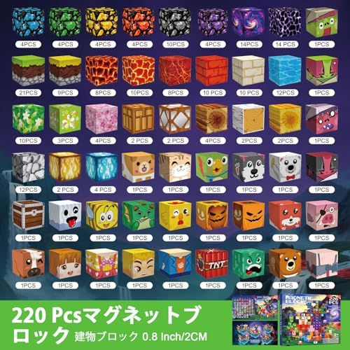マグネットブロック 220 Pcs 磁石ブロック 磁石おもち マグネットおもちゃ 子供知育玩具 男の子女の子 学習教育用 建設玩具 プレゼント ギフト 贈り物po ab 5 c 852 d