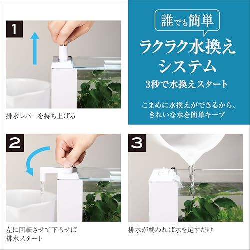 アワーズホワイト; アクアリウム用インテリア水槽; 誰でも水換え簡単機能付き; LEDライト付き
