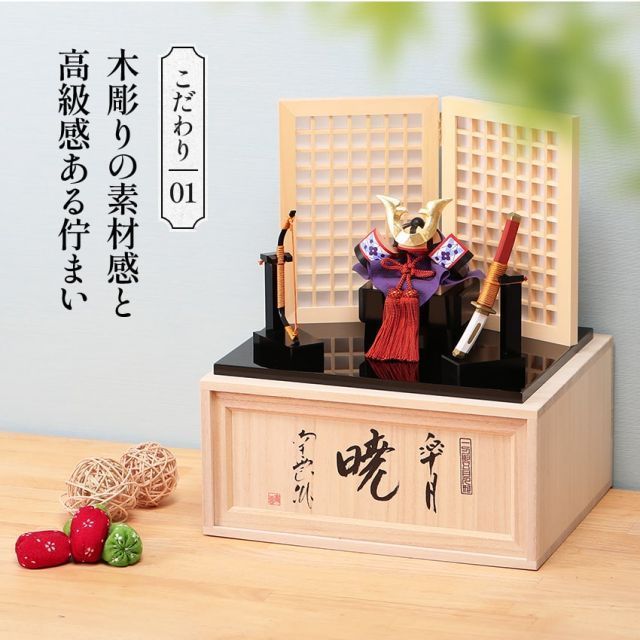五月人形 コンパクト 兜 兜飾り 木製 おしゃれ 人形 収納飾り 南雲 皐月暁 端午の節句 男の子 室内 玄関 セット ミニ 名前旗 名入れ 木札