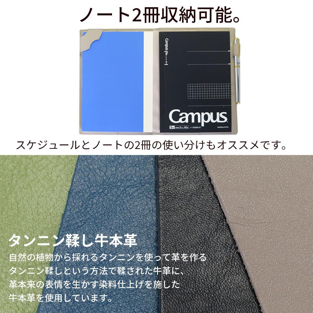 HAKATA NO MORI LEATHER ノートカバー A 5 本革 スリム 2冊 収納 手帳カバー カバー 大学ノート ペンホルダー しおり付き カード入れ ポケット レザー ベージュグレー