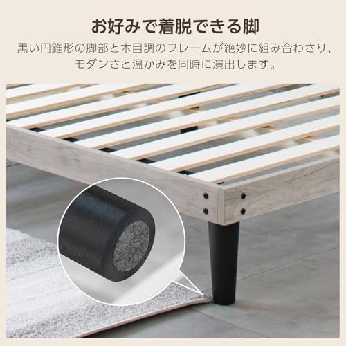 【9センチのサイドフレーム、頑丈な構造】9センチのサイドフレームで耐荷重UP。メラミン樹脂化粧パーティクルボードの堅牢な構造で、安定性と耐久性があります。耐久性に優れたLVL積層合板のすのこを使用しています。安定した寝心地を提供します。