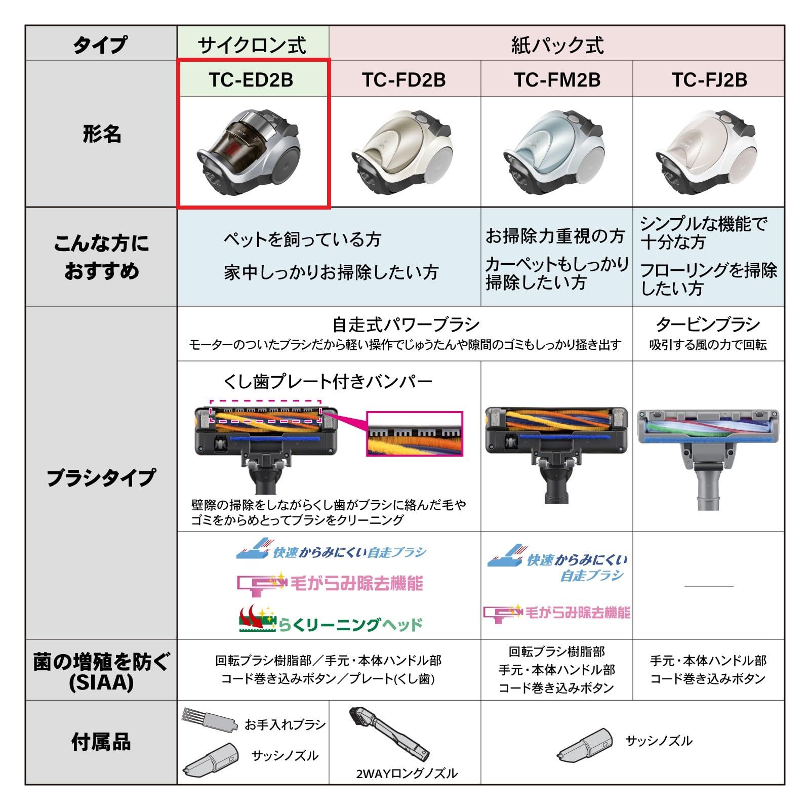 三菱電機 Mitsubishi Be-K(ビケイ) サイクロン式 掃除機 小型 軽量 自走式パワーブラシ からみにくい 日本製 TC-ED2B-S プレミアムシルバー