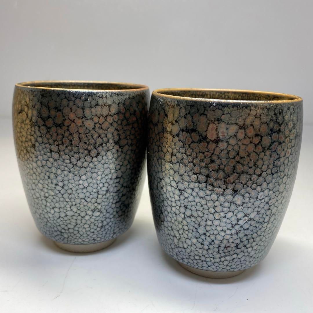 佐々木禅 油滴釉 湯呑一対 共箱 東さ6 0706
