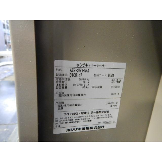 2012年製 ホシザキ ティーサーバー ATE 250 HWA 1 水道直結 給茶機 茶葉タイプ mm 42 kg 250杯 H 7 L 100 V 冷水機能付