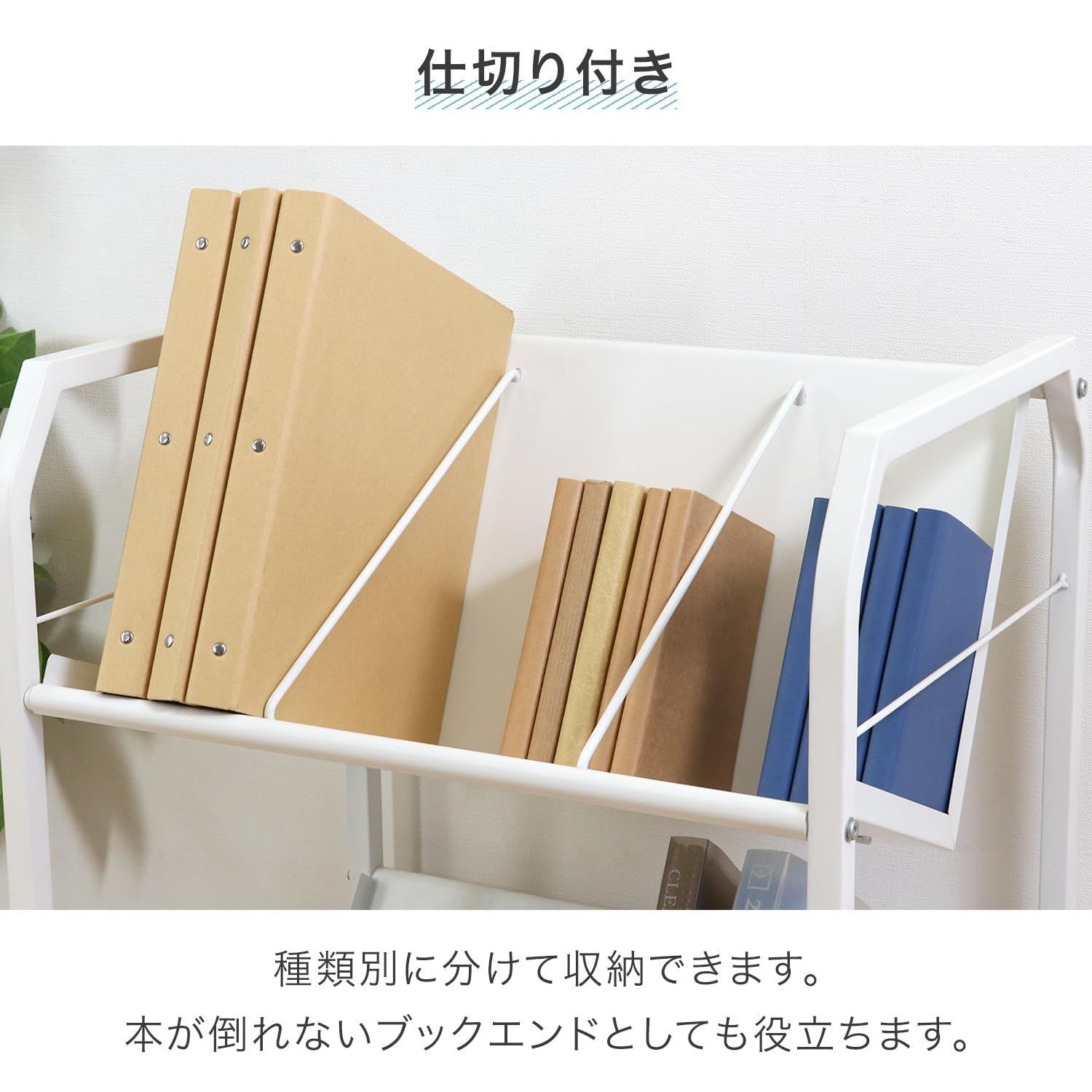 スチールラック A 4対応 ホワイト 幅55 奥行40 高さ70 cm キャスター付き 2段 ファイルワゴン 83983 不二貿易