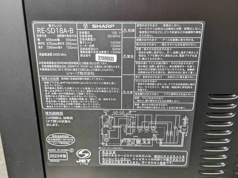 SHARP シャープ オーブンレンジ RE SD 18 A B 製 通電 簡易 251025