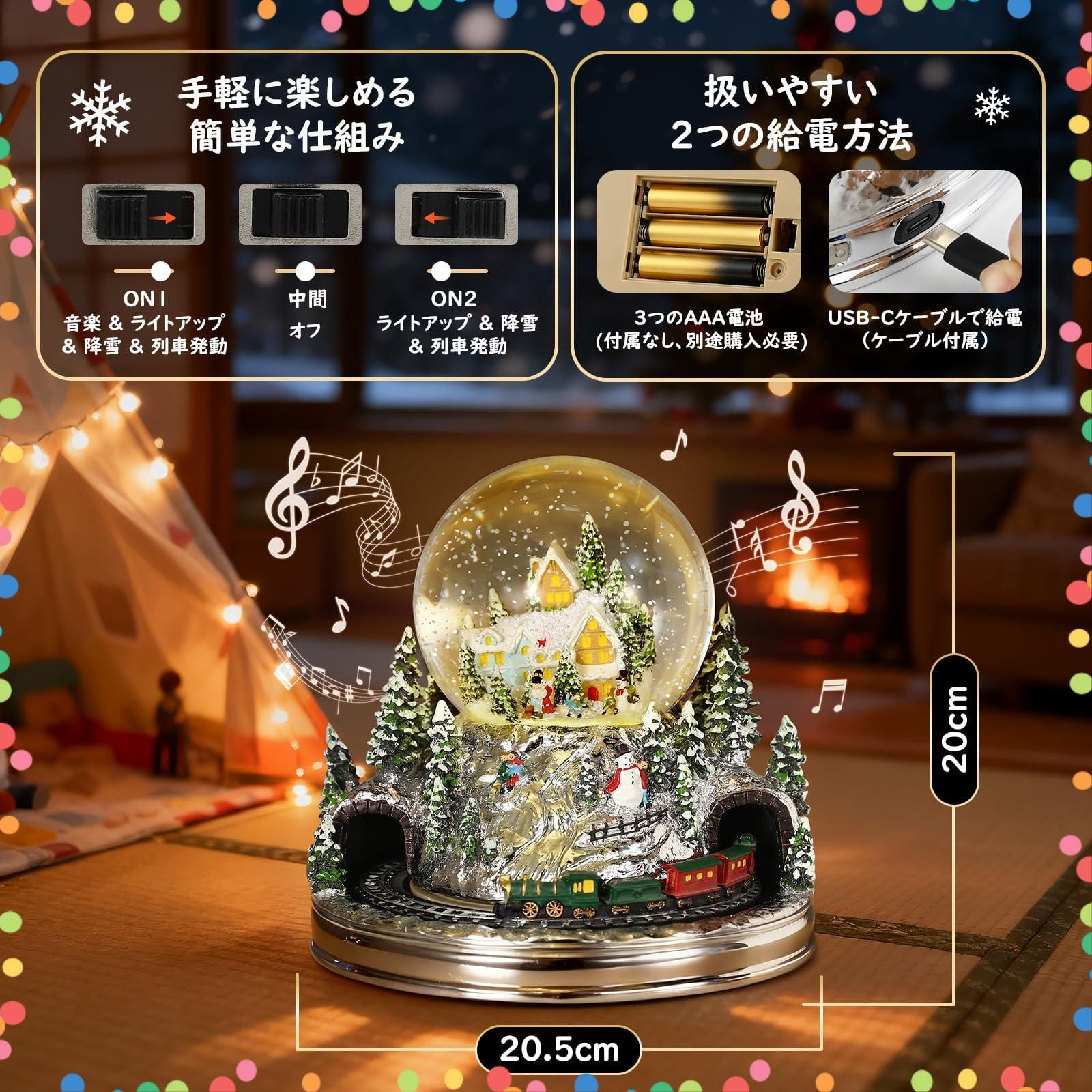 Lewondr スノードーム クリスマススノードーム クリスマスツリースノーグローブ ライト内蔵 USB&電池式 2Way給電 8曲クリスマスソング自動ループ ガラス/樹脂製 クリスマスプレゼント インテリア クリスマス置物飾り 冬の森鉄道