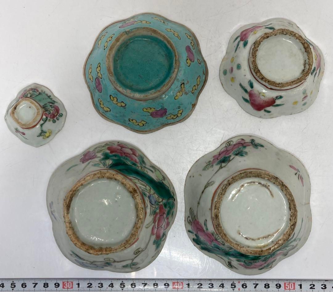 中国清時代 粉彩茶碗 5点 直径12㎝ 9 6㎝ 5 8㎝他 東ま5 1210