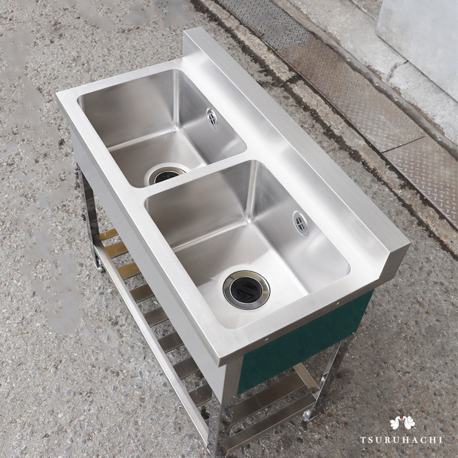 横幅1800 奥行600 高さ800 mm 二槽シンク