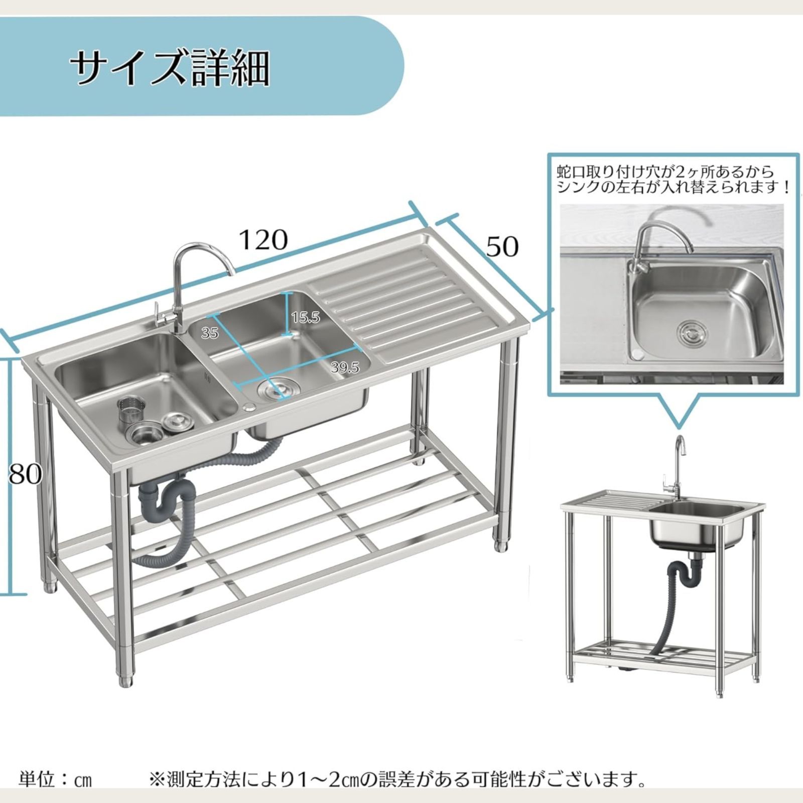 2558 ステンレス製 流し台 作業台付き ダブル シンク 蛇口付き セット サイズ 約120 50 80 cm RC CW 1200 本島 の その他 へは別途配送料有り