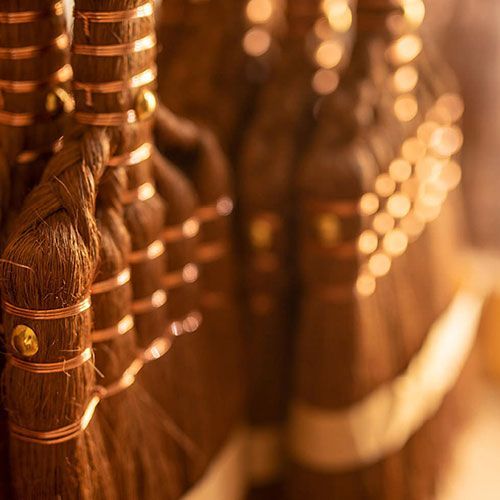 国内生産にこだわった新しいシダ箒。一度は途絶えたシダ箒(庭ホウキ)を、職人の緻密な計算と熟練の技術により蘇らせました。