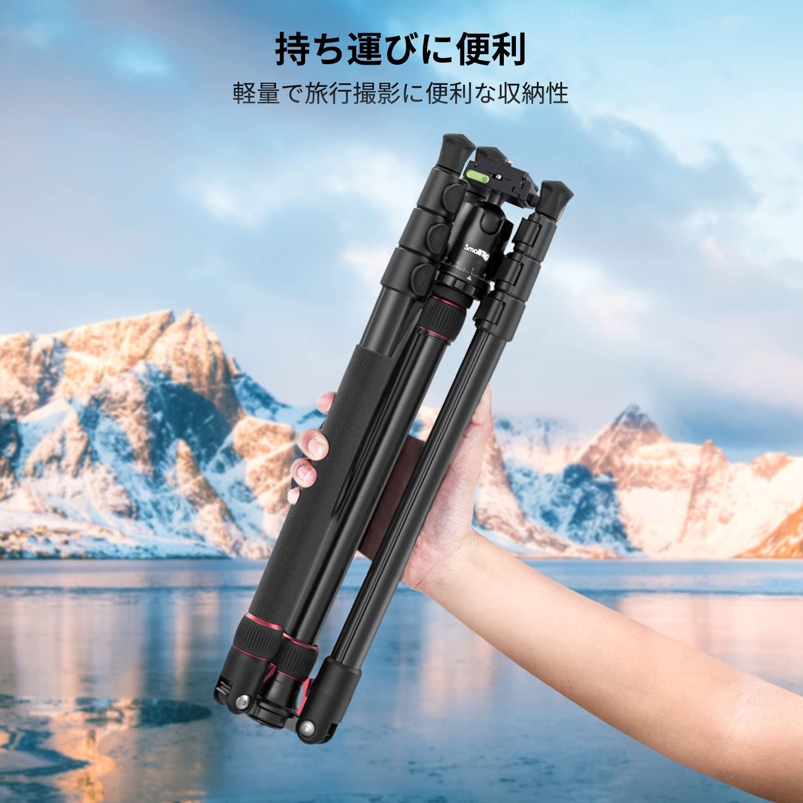 SmallRig カメラ用三脚 全高180cm 一脚可変式 360°自由雲台付き クイックシュー式三脚 コンパクト アルミ製 耐荷重15kg 4段調整 中心軸反転可能 スマホクリップ付き-3935