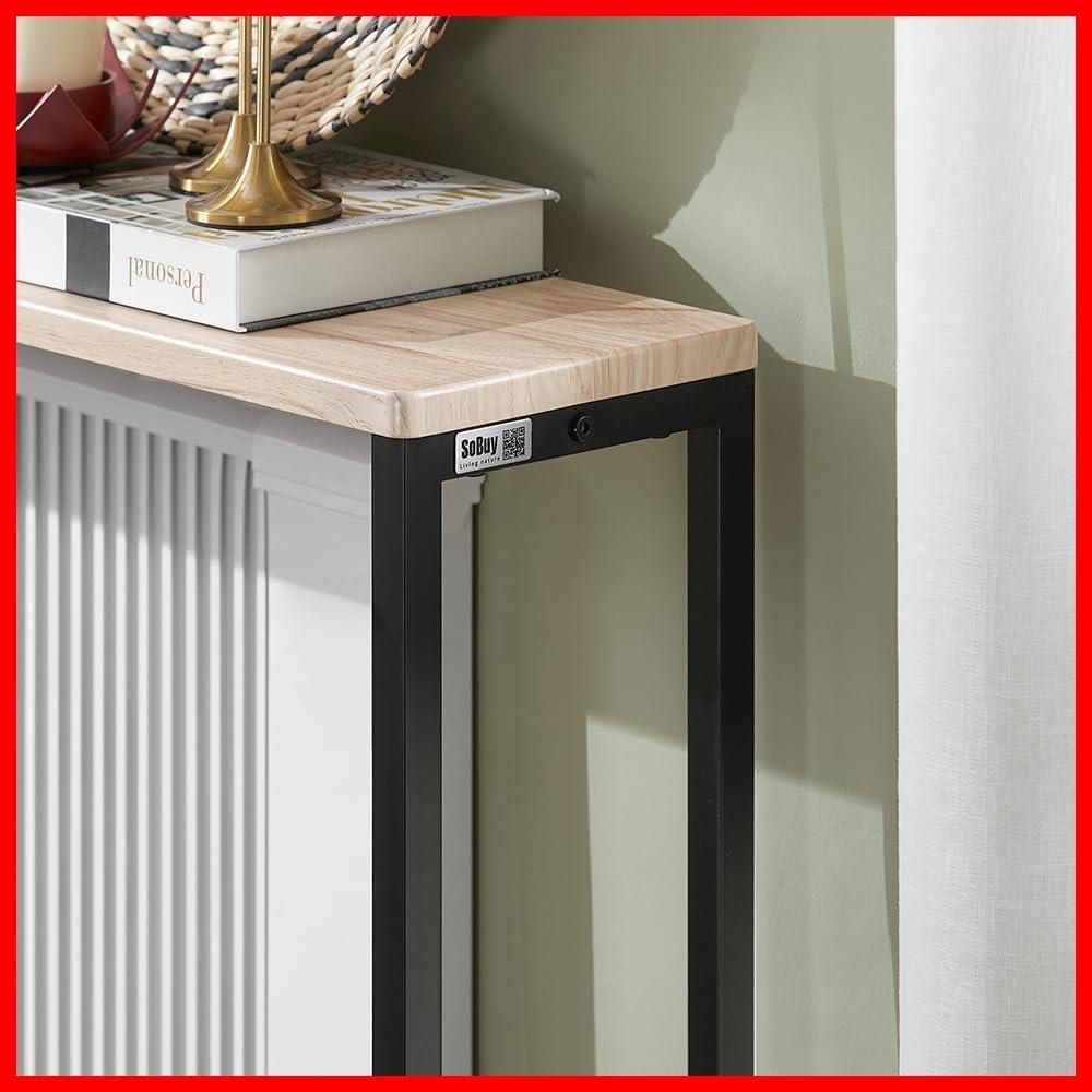 SoBuy コンソールテーブル 玄関テーブル おしゃれ サイドテーブル スリム 幅120×奥行き20×高さ80 細長い 飾り棚 北欧風 玄関収納 省スペース 玄関 棚 オープンラック (ナチュラル/FSB19-XL-Z)