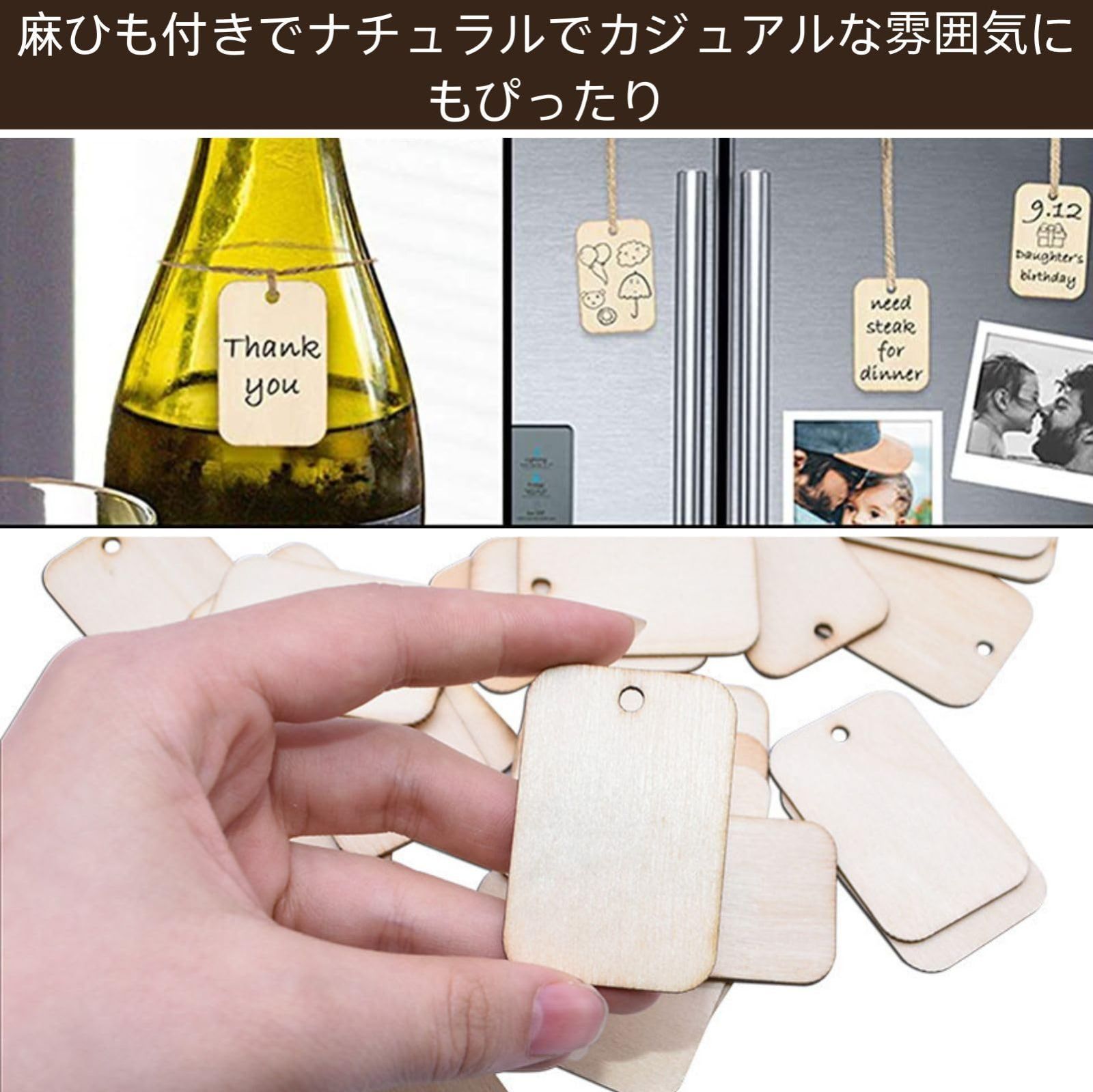 DIYに最適:絵具や色鉛筆でペイント可能。クリスマスや七夕などのイベントで活用できる多目的な木製タグ。自分好みに飾り付けを楽しめます。