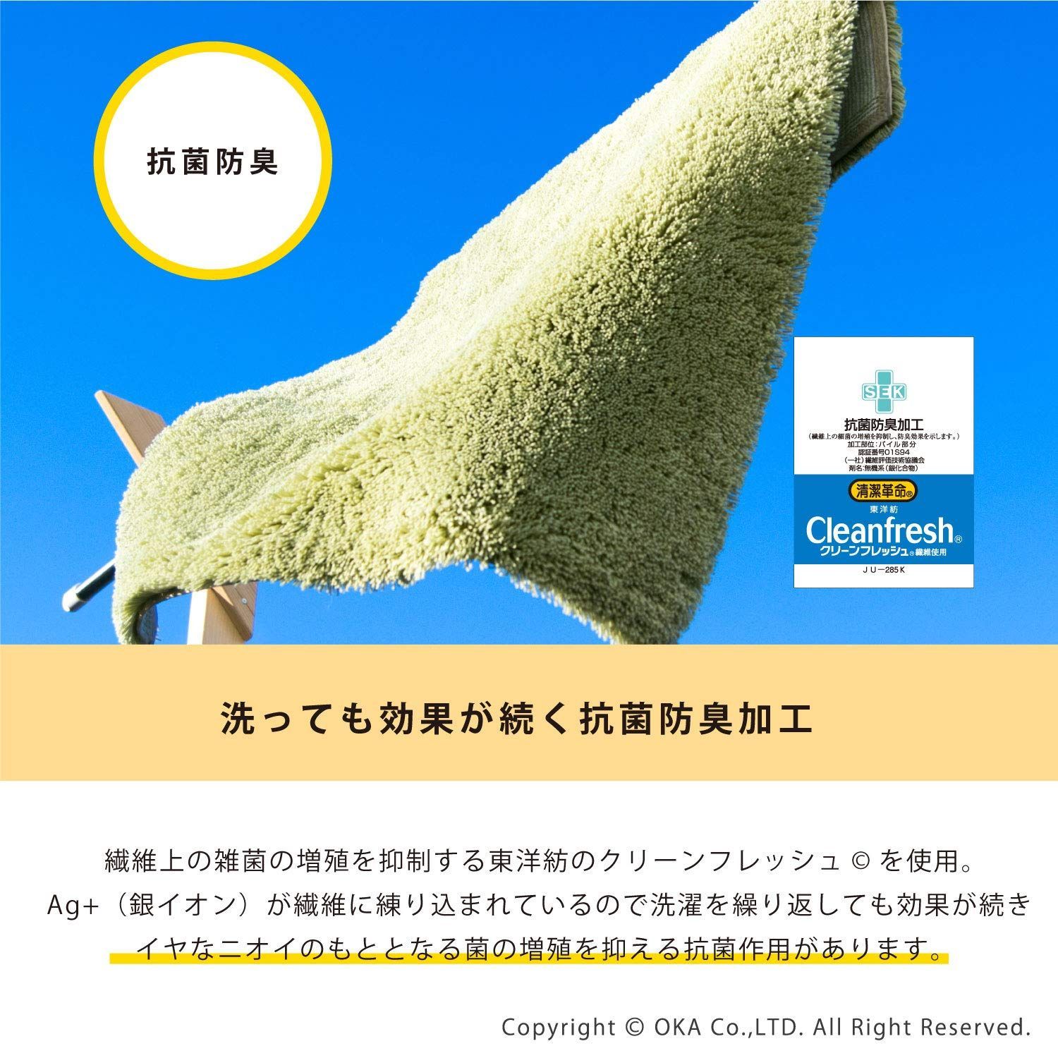 オカ株式会社が独自開発した特殊構造繊維「乾度良好(かんどりょうこう)」は25年を超えるロングセラーのバスマットです。
