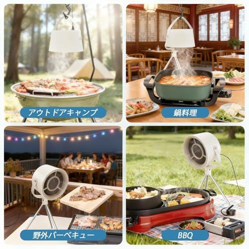 迅速に発送 卓上換気扇 焼肉用 煙吸引機 3段階風量 角度調整 三脚スタンド 活性炭フィルター計 本体装着1 予備11 分解洗浄OK 小型 軽量 持ち運び便利 卓上レンジフード 家庭用 室内焼肉 キャンプ対応 ミルキーホワイト c 505 a 197