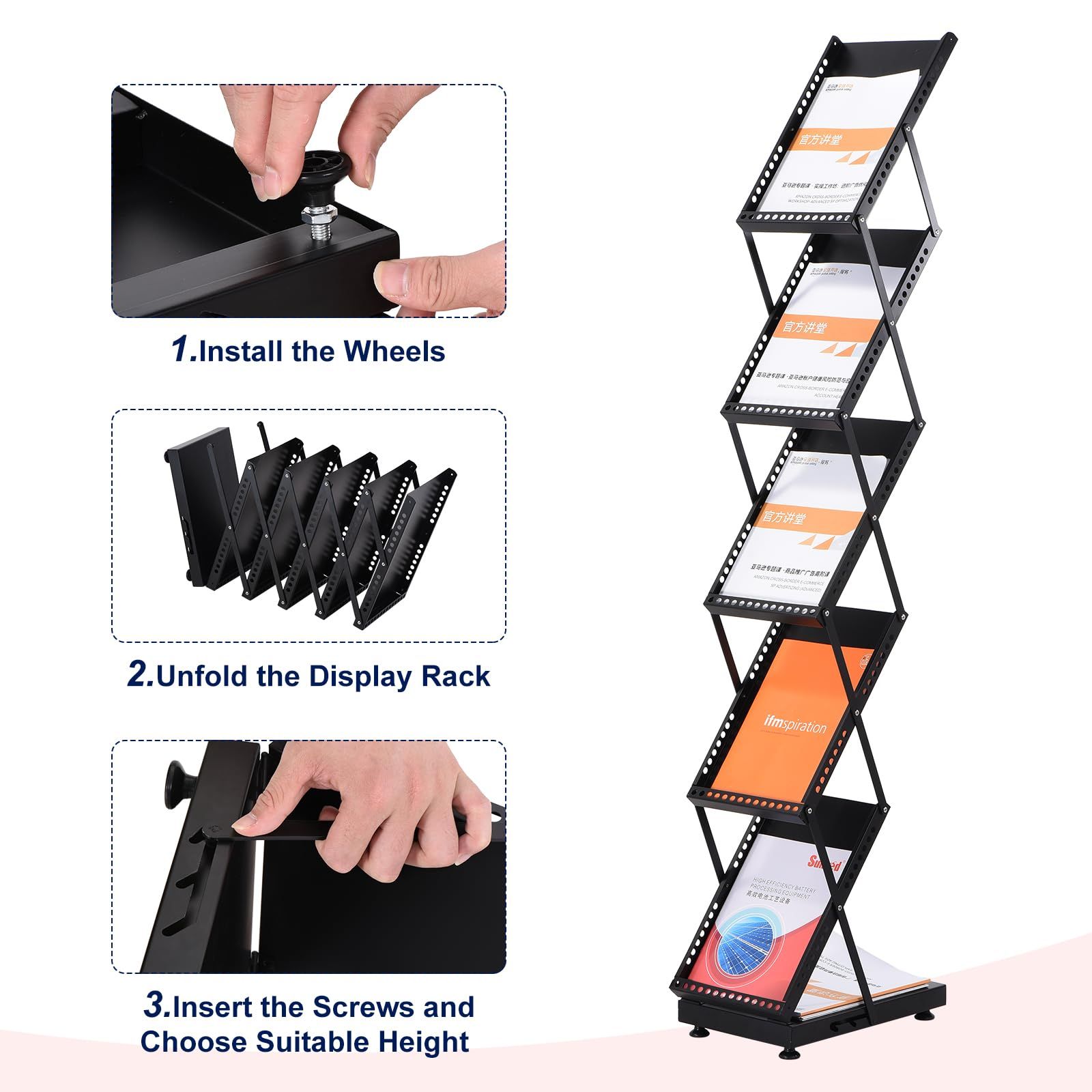 PATIKIL 折りたたみ式マガジンディスプレイラッ ク 5段階 パンフレットスタンド カタログ文献ラッ ホテル 展示会 貿易ショー オフィ ス用 ホイール付き