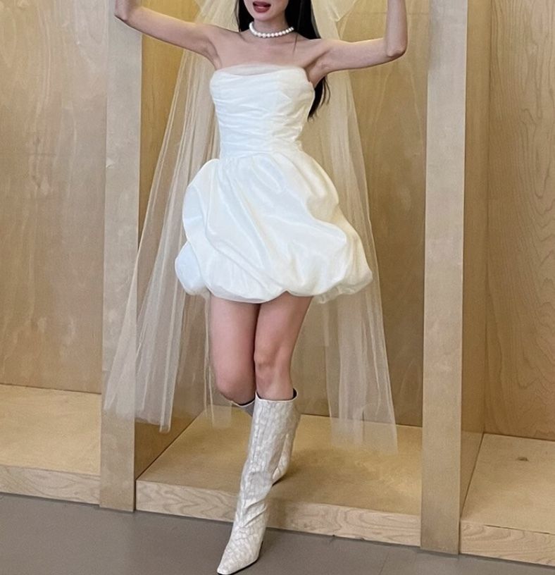 ビスチェ ウェディングドレス ミニ丈 ハイウエスト 韓国