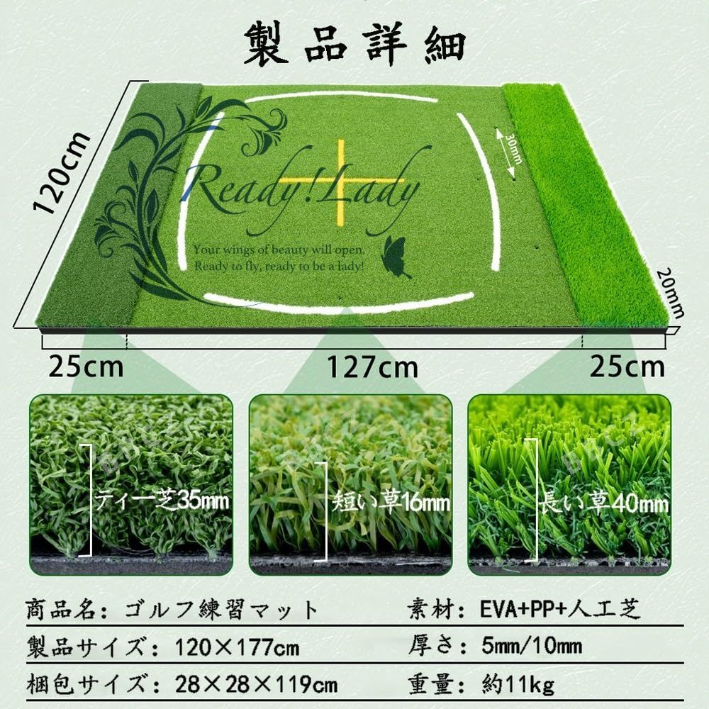【ゴルフ練習マット】この177cm x 120cmの大型ゴルフ練習マットは、あらゆるスイング練習に十分なスペースを提供します。チップショット、スイング、ドライバーショットの練習に最適な、高品質な打撃マットです。