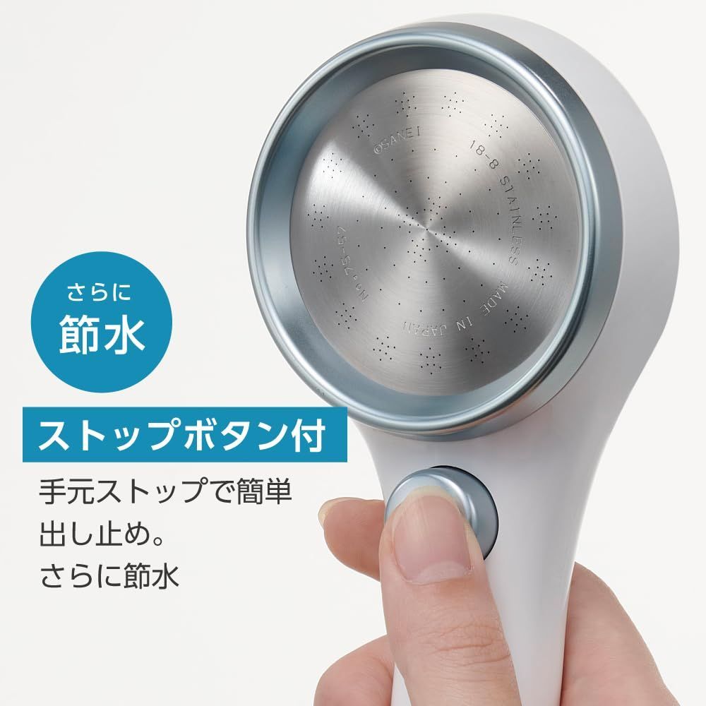 【最高の浴び心地×高い節水率】こだわりの詰まったステンレスシャワー板には0.3mmの極小サイズの穴を227個配置し、密度の高い独特の浴び心地。滑らかさと力強い勢いはそのままで節水設計を施し、さらに手元ストップ機能を追加することで、約50%の節水率を実現しました。