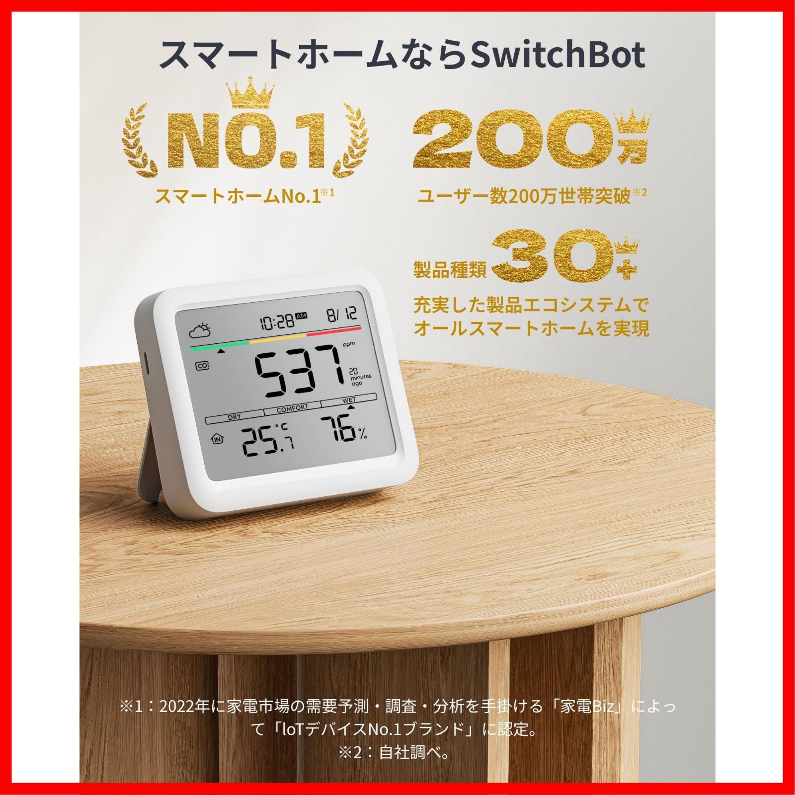数量 スイッチボット デジタル 大画面 高精度 CO 2測定器 アラーム 快適指数 天気予報 温湿度計 時計 卓上 カレンダー 二酸化炭素濃度計 スマホ連動 アラート通知 グラフ記録 2センサー スマートホーム Alexa Google Switc