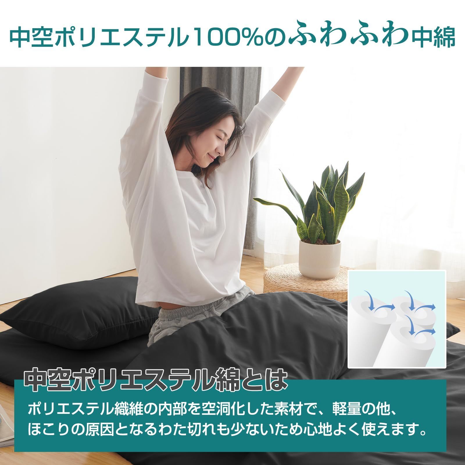 【高品質布団セット 7点】このセットには、敷布団、掛布団、枕、枕カバー、掛け布団カバー、敷き布団カバー、収納ケースの合計7点が含まれます。セミダブルサイズの寝具一式が揃うので、単身赴任や来客用に大変便利なコンパクトセットです。高密度の極細繊維を採用し、快適な睡眠環境を1年中提供できる品質を追求した布団セットです。