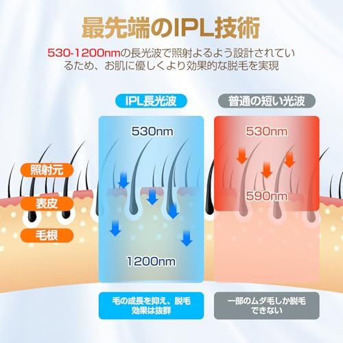 【2種類モード&5段階照射レベル&全身ケア】IPL光脱毛器は2照射種類モードと5段階照射レベルを装備しています。使用部位や肌質に合わせて、最 適な設定を選択できます。さらに、手動/自動の2つの照射モードが搭載されており、狭い部位では手動モードを使用し、広い部位では自動モードを選択し、使い分けが可能です。