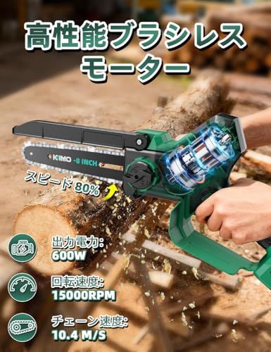 2026 8インチ 4000 mAh大容量バッテリー 付属 KIMO 高枝チェーンソー 充電式 1台2役 高枝切り電動チェーンソー ハンディチェンソー 電動 チェンソー 急速充電器 ブラシレスモーター 延長ポール145?280 cm無段 1 bd 967 de