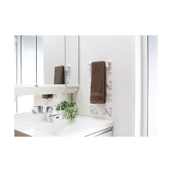 ●洗面所のタオル掛け近くの壁に貼って汚れを防ぐシート。リーフ柄、2枚入です。