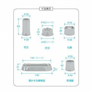 セット内容花立×1、灯立×1、寝かせる線香皿×1、茶湯器×1、仏器×1