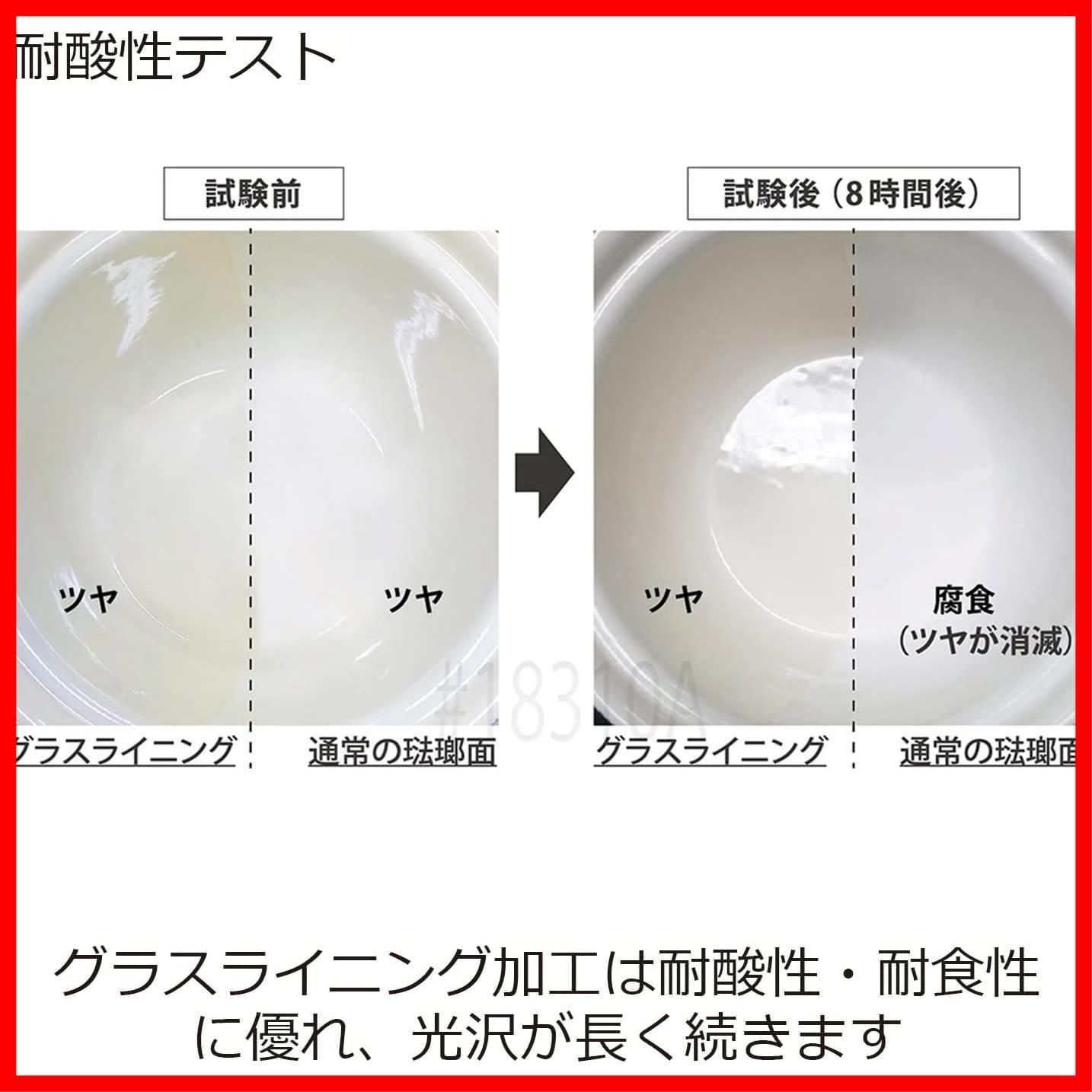 通常の琺瑯加工にプラスし、グラスライニング加工をしています。耐食性・耐酸性・耐アルカリ性に優れ、表面硬度を強化しています