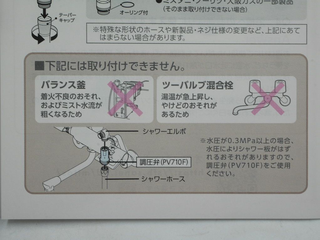 また、取付に適合するといっても水圧やネジ形状等の問題もあります。