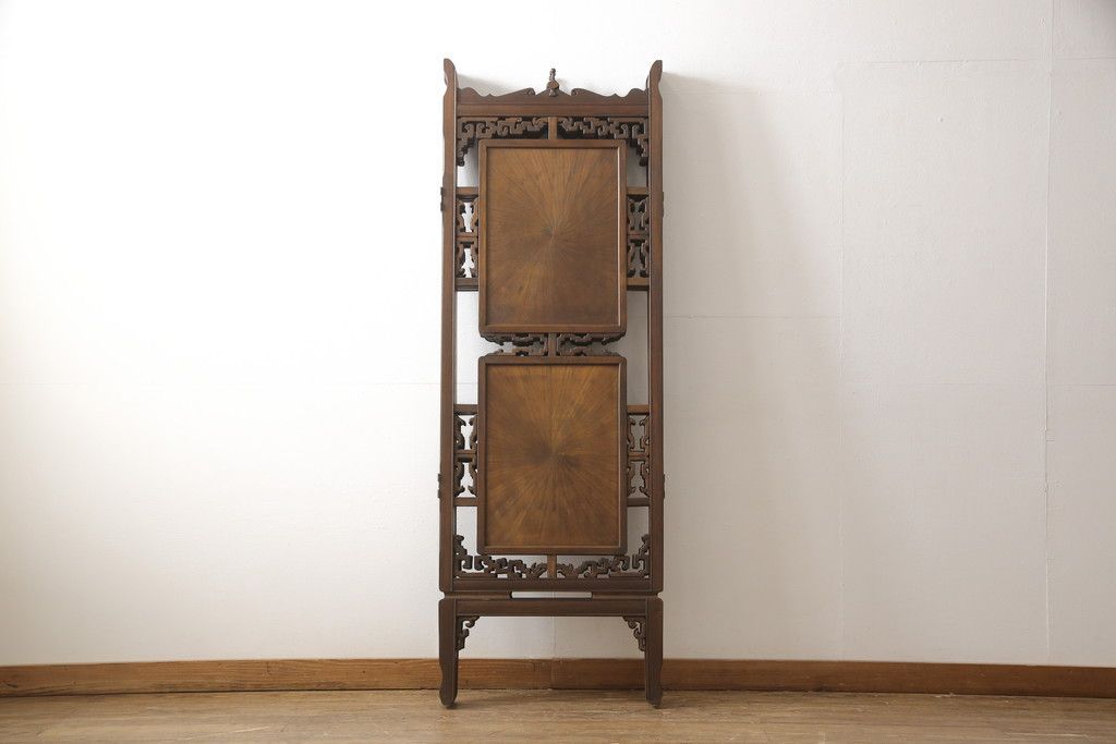 四連衝立て 和製ビンテージ 象嵌 彫刻 R 054822