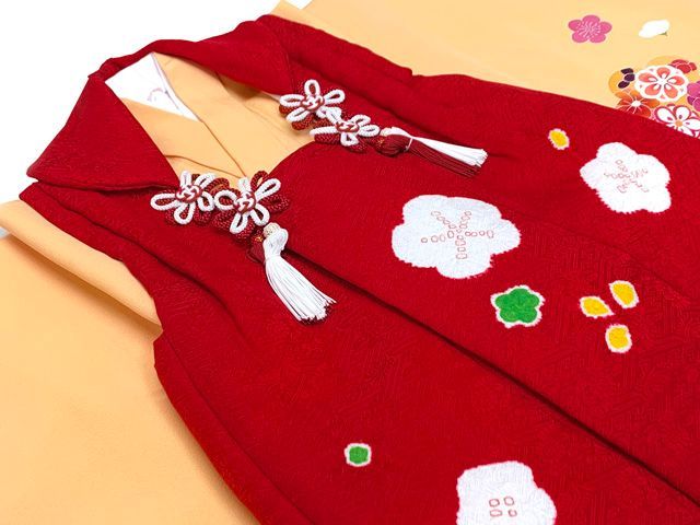 ちょっと 品 七五三 着物 3歳 正絹 フルセット 女の子 友禅 絵羽柄の着物 被布セット 赤x黄色 梅 t 893 set