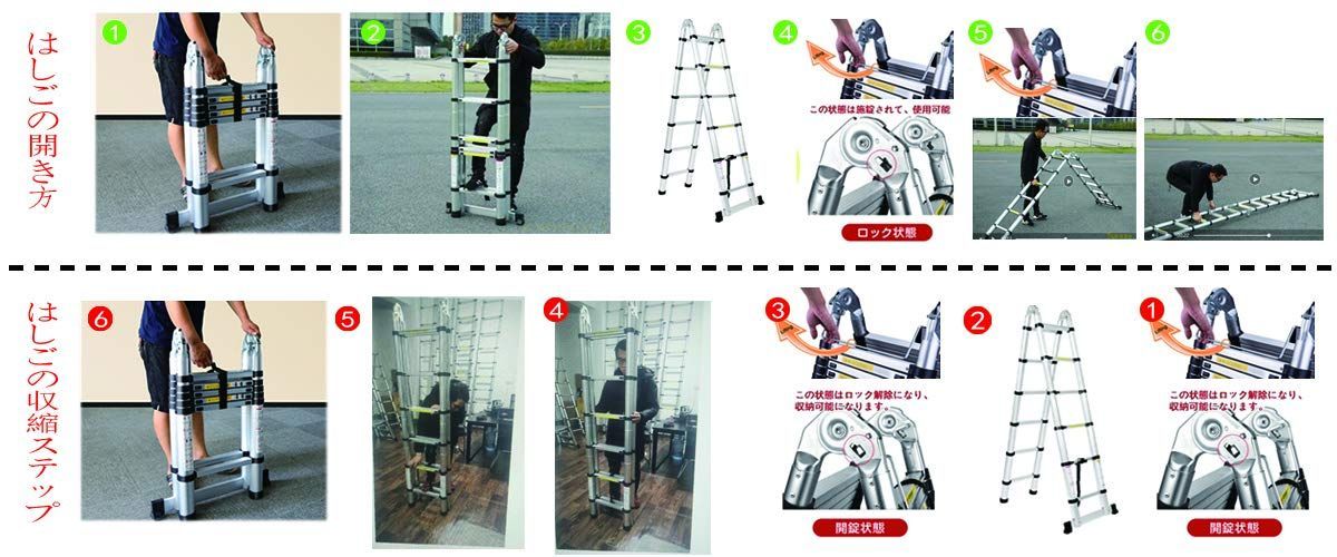 伸縮脚立はしご両用脚立最長1 9 m 伸縮はしご最長3 8 耐荷重150 kg Life 伸縮自在コンパクト スーパーラダー自動ロック スライド式 Easy アルミ 梯子室内室外両用 梯子 1