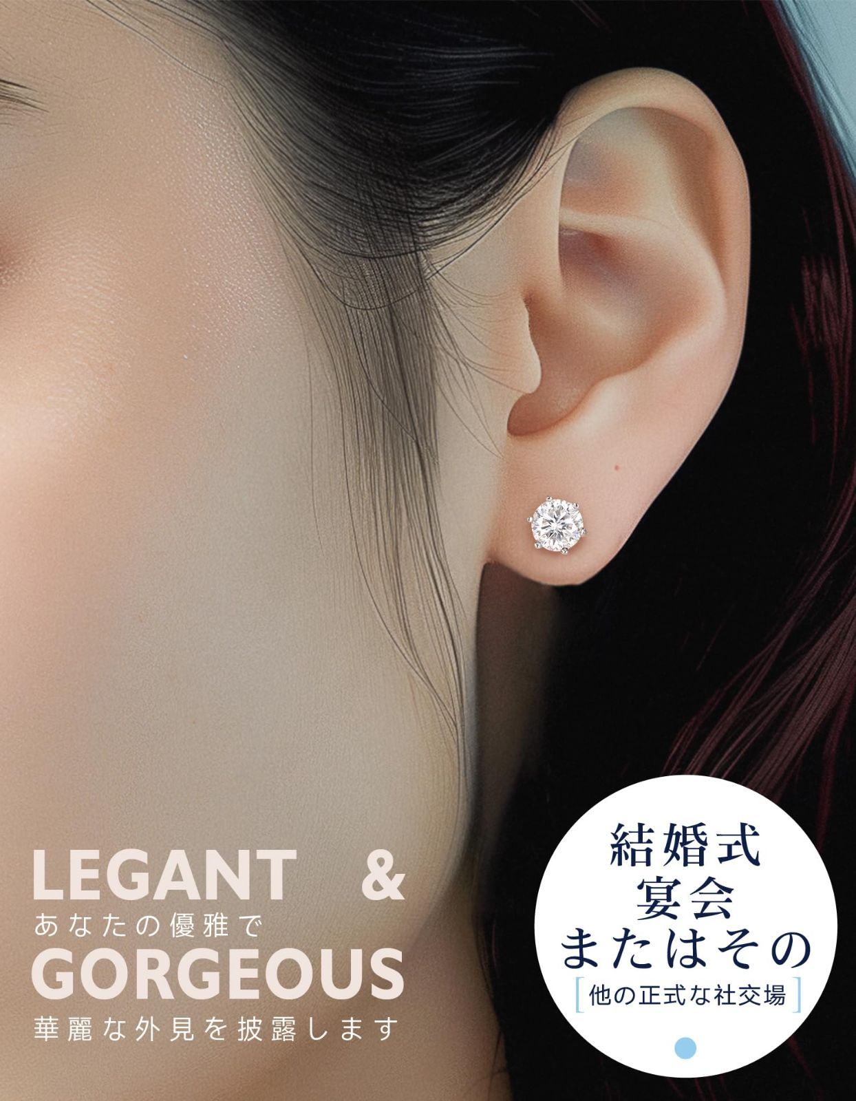 きらめくモアッサナイト ピアス: シルバー925 ピアスモアッサナイトのスタッドピアスは、クラシックなハンドメイドの6爪の象嵌、サイドのハートシェイプのデザインが特徴です。スタイリッシュで輝くレディースモアッサナイトピアスはシルバー925製で、ピアス つけっぱなしには5mm/0.5カラットのモアッサナイトがセットされています