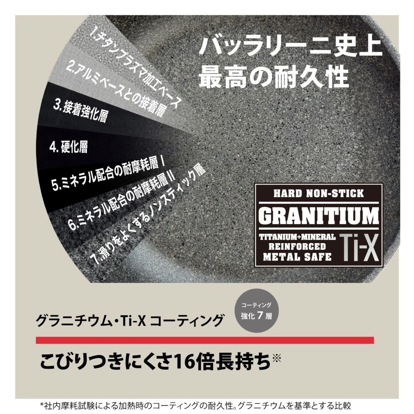 【7層コーティング】チタン強化で焦げ付きにくく、日々の調理に耐える耐久性。