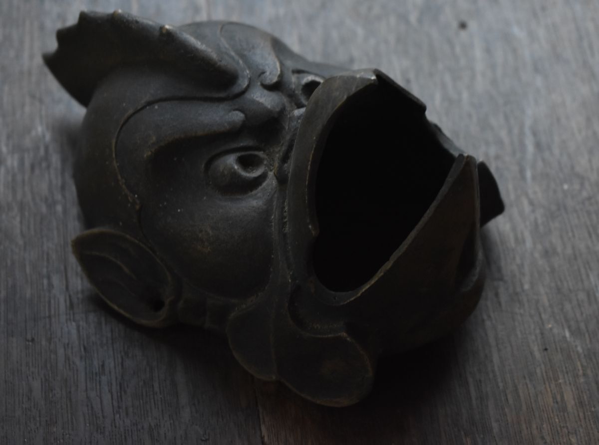 烏天狗 鉄面 在銘 昭和7年 迦楼羅王 1932年 16 10 5 cm お面 魔除け からす 修験道 OSIa 4 y