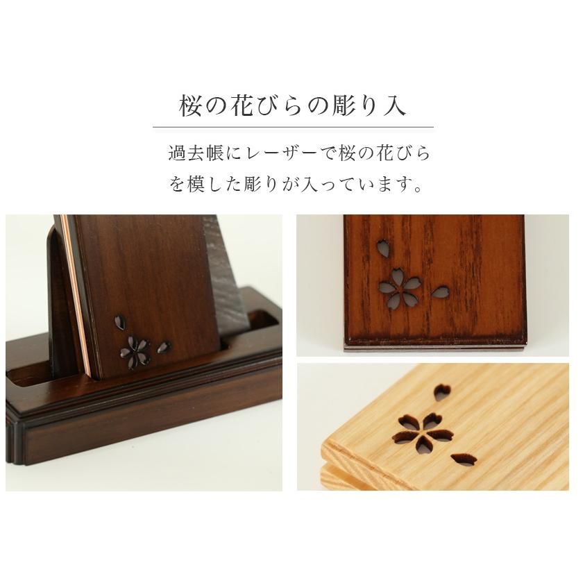 モダン見台 過去帳セット 桜の彫り入 4 0寸 ダーク ライト ナチュラル 天然木 オーク材 過去帖 過去帳立 おしゃれ 国産