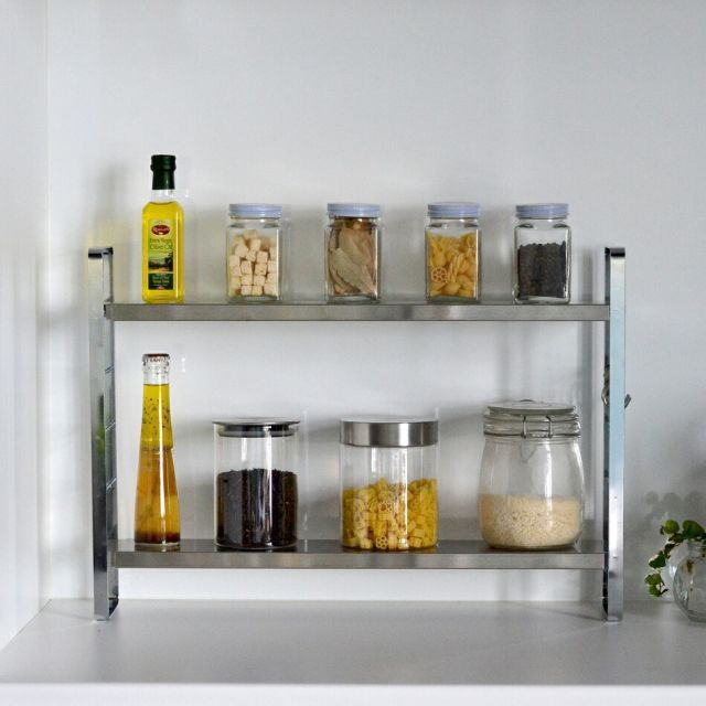 ・下の段は4段階で調整可能なので、調味料や瓶の高さに合わせてお好みで調整可能です。