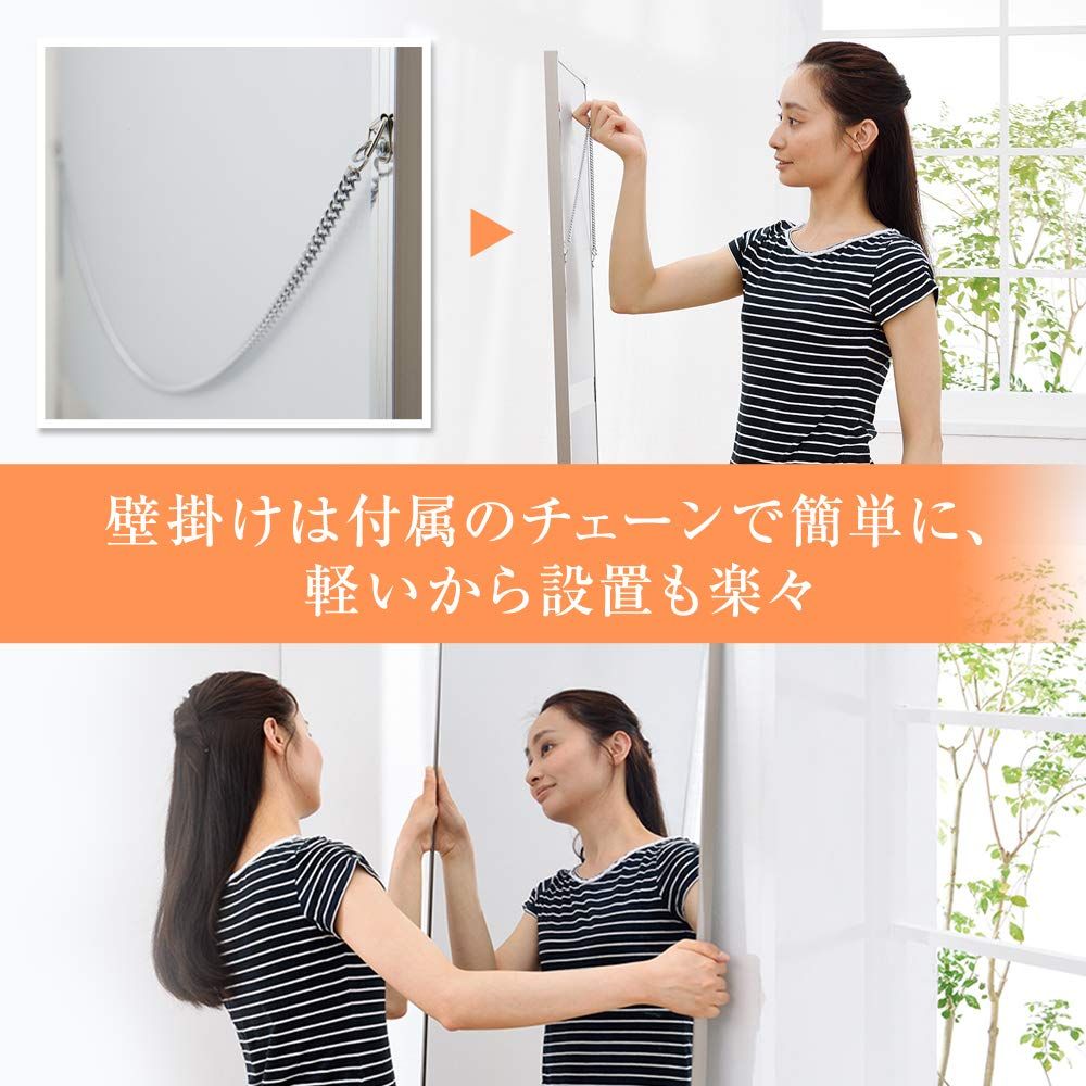 設置方法:付属のチェーンで吊り下げるか、壁に立てかけてご使用ください。ただし、滑り止めゴム付き。