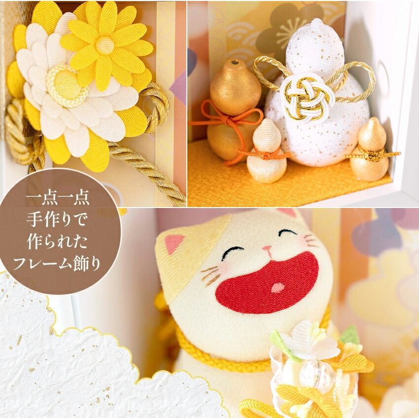 喜寿祝い 古稀祝い 傘寿祝い 米寿祝い 卒寿祝い 敬老の日 賀寿 長寿祝い 70歳 77歳 80歳 88歳 90歳 ギフト プレゼント 賀寿のフレーム飾り 招き猫 ネコ ねこ 置物 ちりめん 高さ22 5 cm 古稀 卒寿 和風 玄関