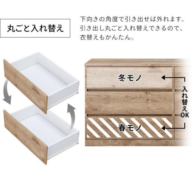 ・入れ替え簡単:下向きの角度で引き出せば着脱可能。衣替えに便利。