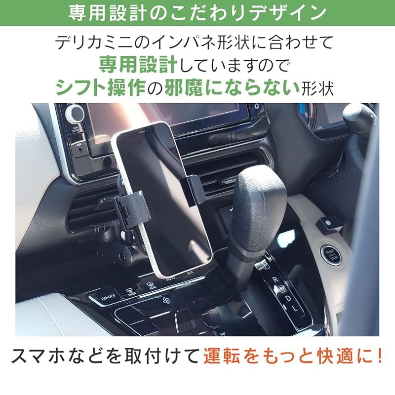 商品名:【新品】 ビートソニック トヨタ デリカミニ専用スタンドセット(ワイヤレス充電対応スマホホルダー付き 5W/7.5W/10W) BSA58 4AA / 5AA スマホスタンド デリカミニのパネルの形状に合わせて設計していますので、簡単にしっかり固定! 携帯ホル