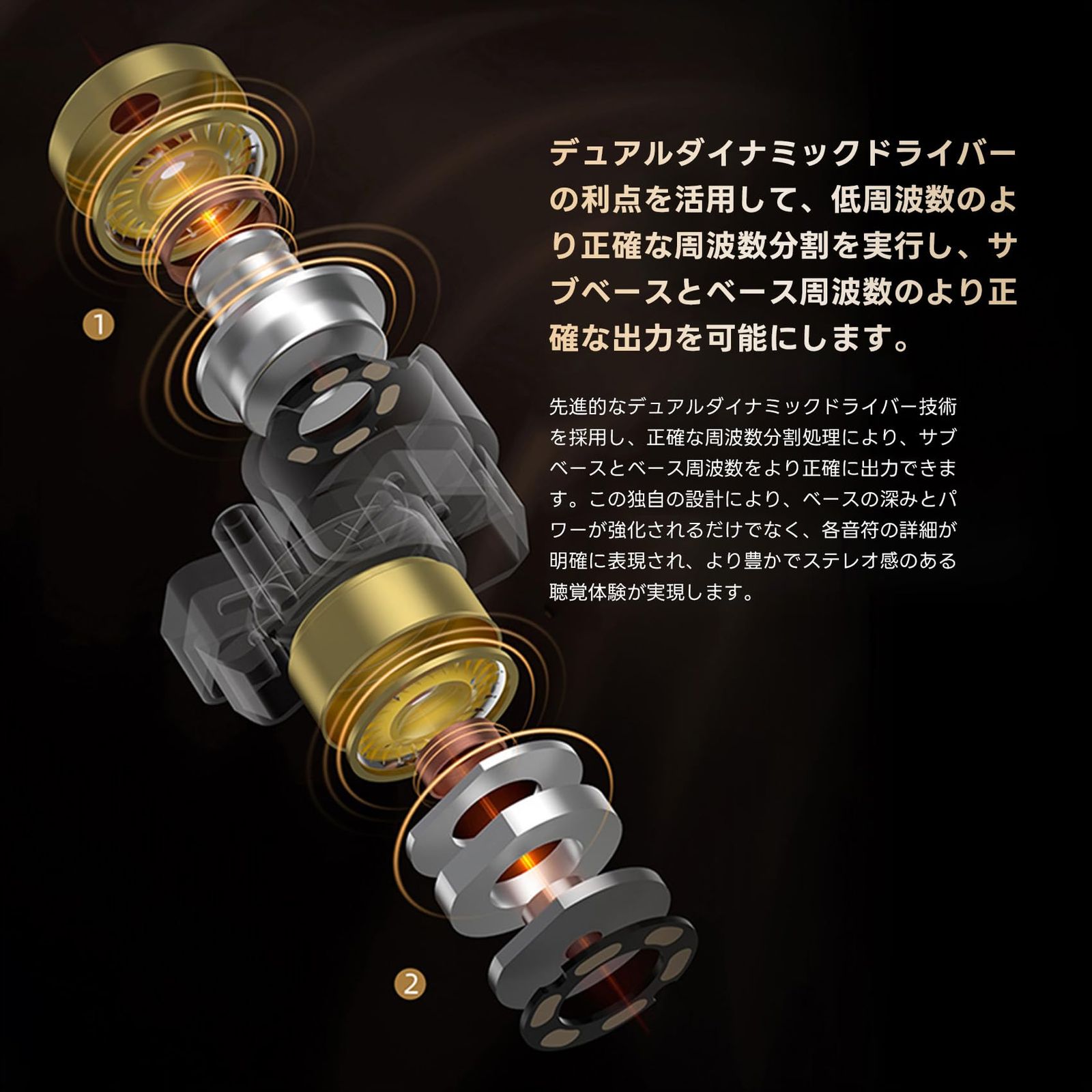 【2025最強のKZハイブリッドイヤホン】KZ ZA12はKZ イヤホン最強のハイブリッドイヤホンとして、10mmスーパーリニアダイナミックドライバーユニット+8mm 高性能ダイナミックドライバー、31736デュアルアレイバランスドアーマチュア*2、30019カスタマイズバランスドアーマチュア*2の組み合わせを採用しています。HiFiレベルをはるかに超える音質体験をもたらし、プロのミュージシャンや、音質に対する要求が高いオーディオ愛好家のニーズを満たします。一方、バランスドアーマチュアドライバーは高周波数帯域で優れた性能を発揮します。そのコンパクトな構造と迅速な応答は高周波数の詳細な再現を可能にし、クリアで透明な音の質感をもたらします。