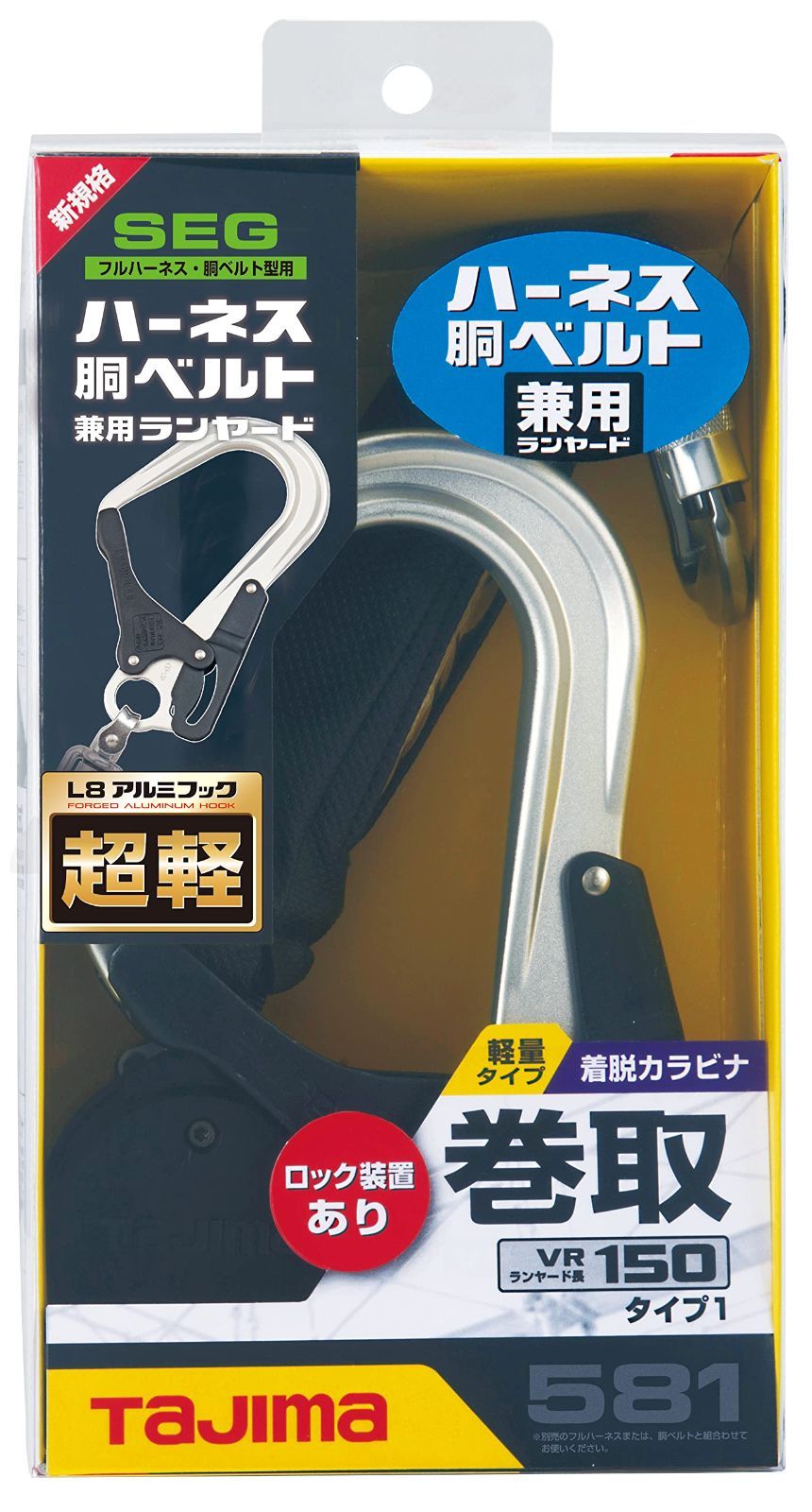 TJMデザイン(TJM Design)タジマ ハーネス用胴ベルトヨウ兼用ランヤードVR150LシングルL8A1VR150L-L8