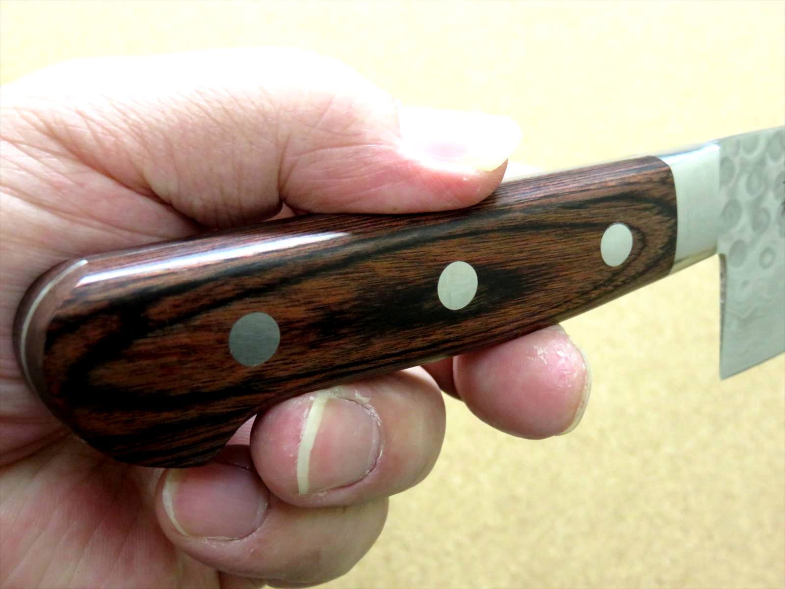 関の刃物 牛刀 21 cm 210 mm 富士觀 ダマスカス 17層 鎚目鍛造 VG 10 口金付 マホガニーハンドル 両刃 万能包丁 肉切り 魚処理 野菜