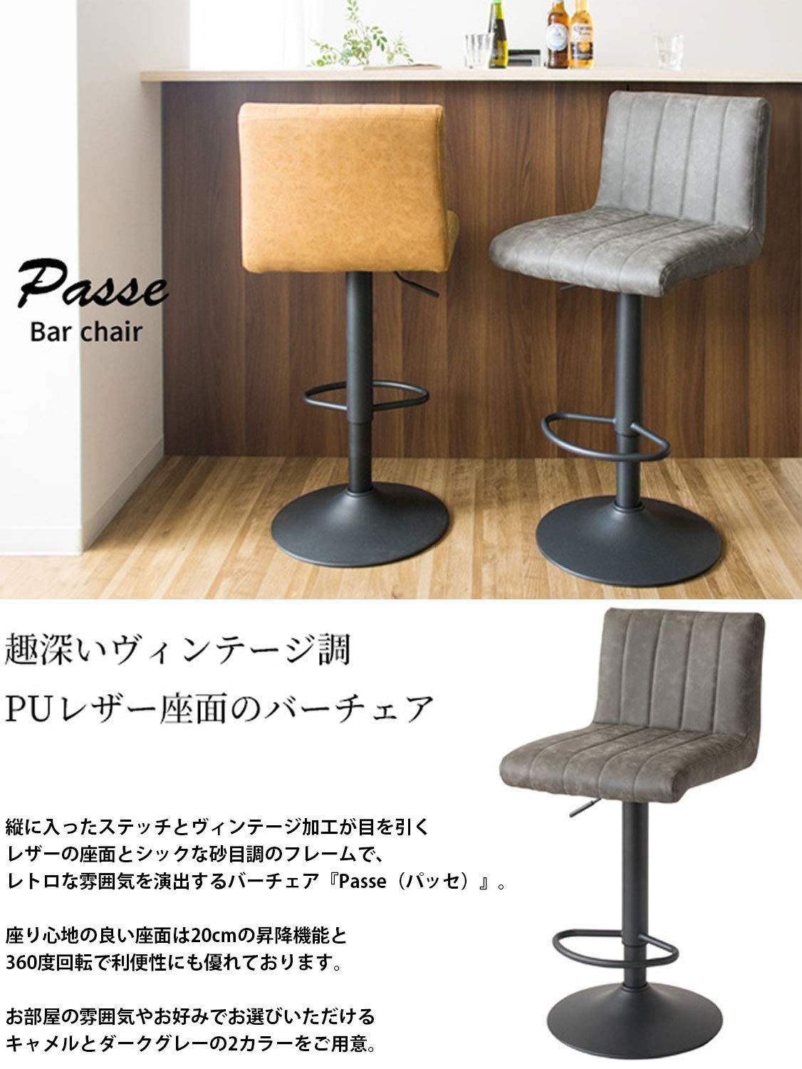 カウンターチェア バーチェア 幅41 奥行44 高さ90~110 cm 座面高 63~83 キャメルPasseKNC K 102