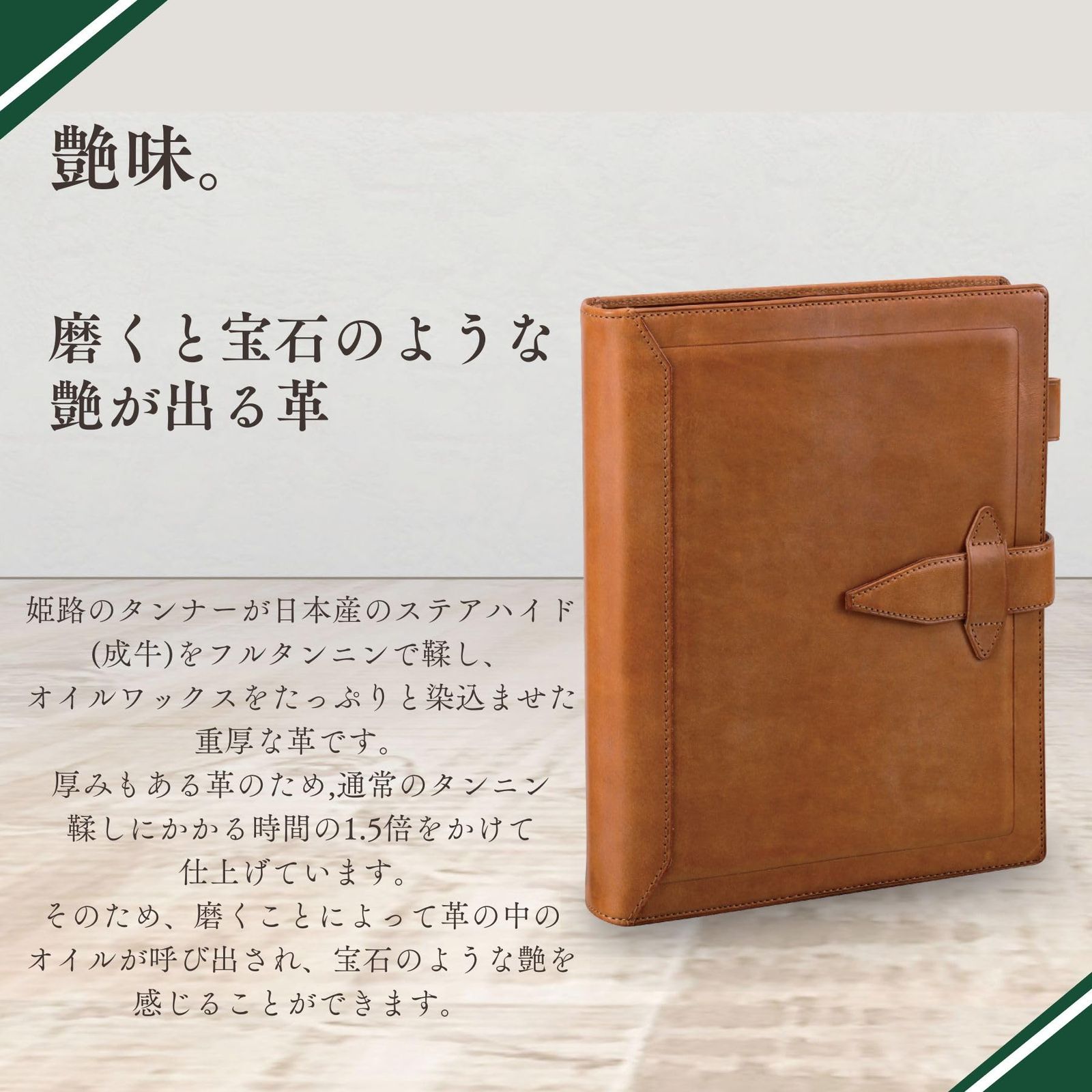 磨くと宝石のような艶のシステム手帳で人気のロロマクラシックシリーズ。たっぷりと染込んだオイルとワックスにより深い艶色が表れます。