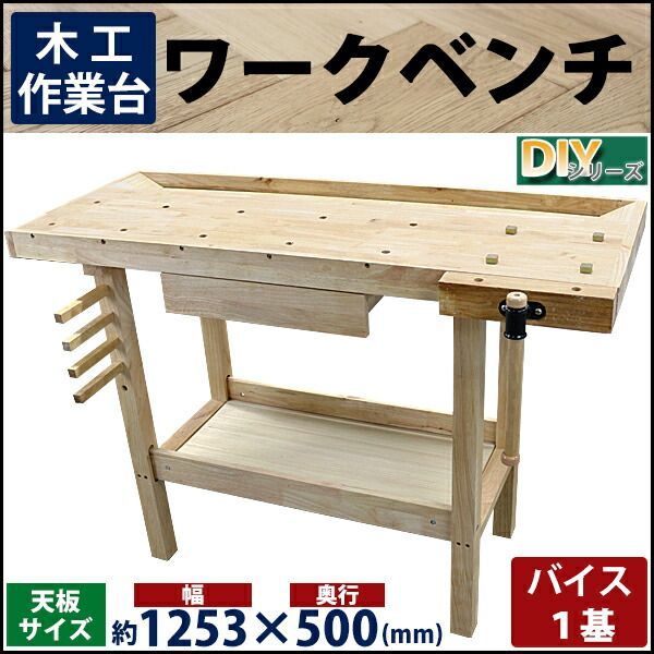 ワークベンチ 木工作業台 天板幅約1253 mm 天板奥行約500 耐荷重約100 kg DIY バイス1基 木製作業台 工作台 作業台 日曜大工 ガレージ 引き出し 収納 棚 万能作業台 工作作業台 バイス 万力 ワークテーブル workbench s 01